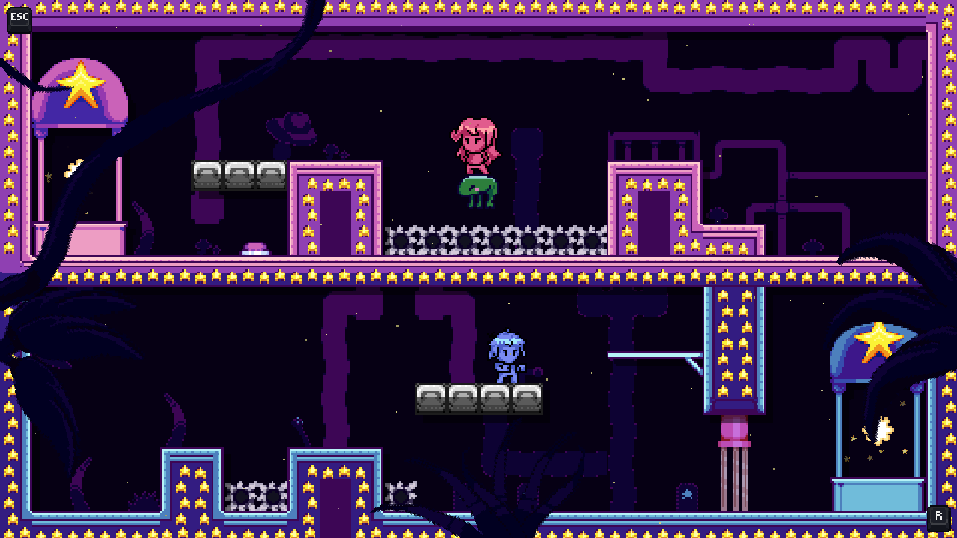 O jogo foi desenvolvido explorando a ideia de que movimentar um personagem afeta diretamente o outro, exigindo raciocínio e planejamento para progredir.